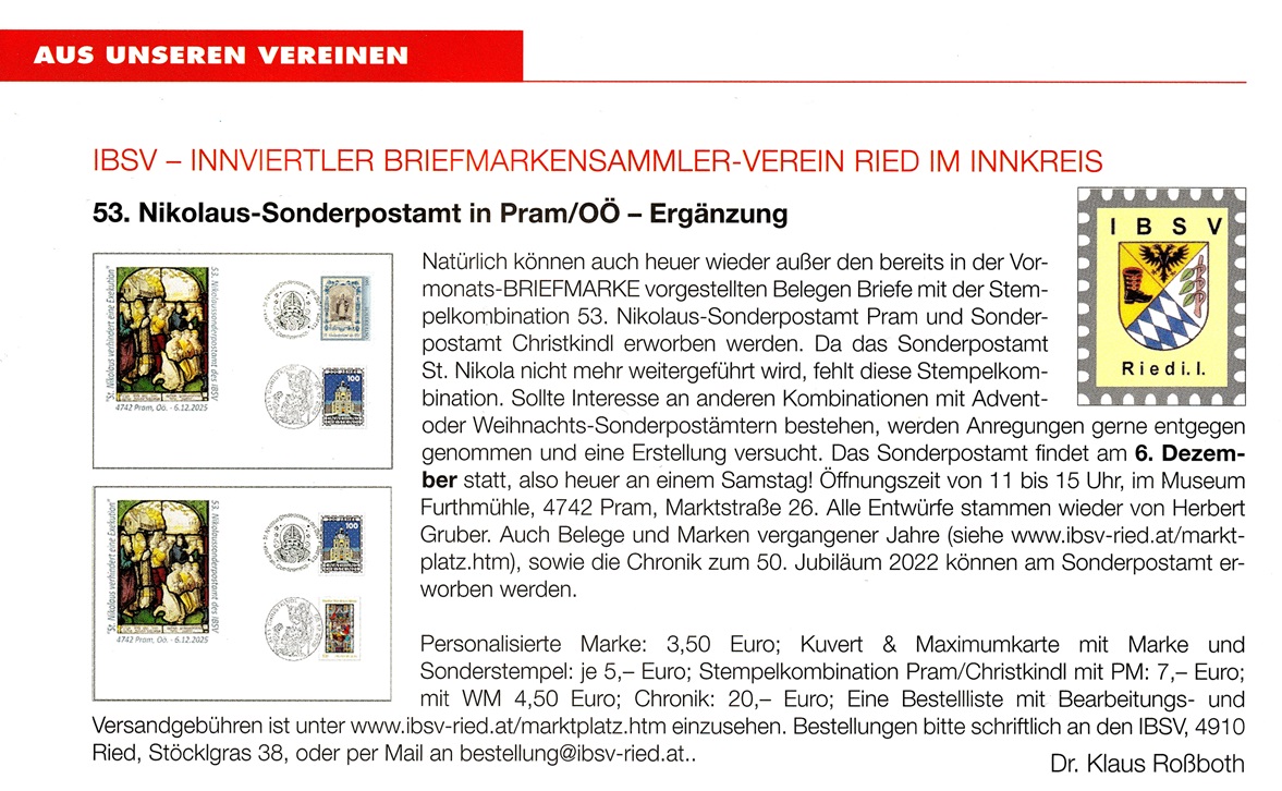 | Bericht in der "Briefmarke 4.12" - 100 Jahre SV Ried | |||