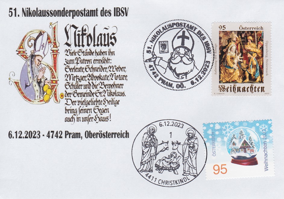 ![]() Kuvert "Nikolaus 2023" mit PM Nikolaus € 5,00 (IBSV 3) |
