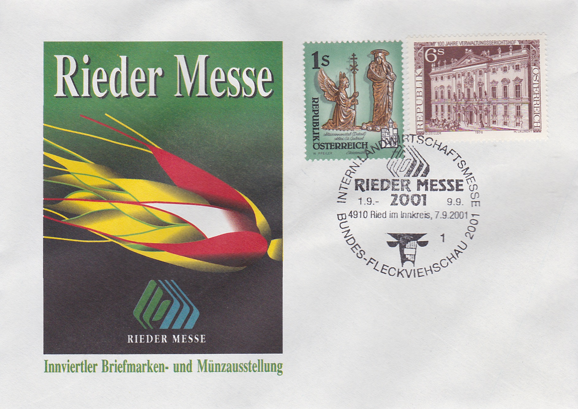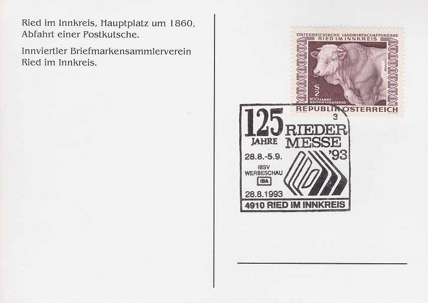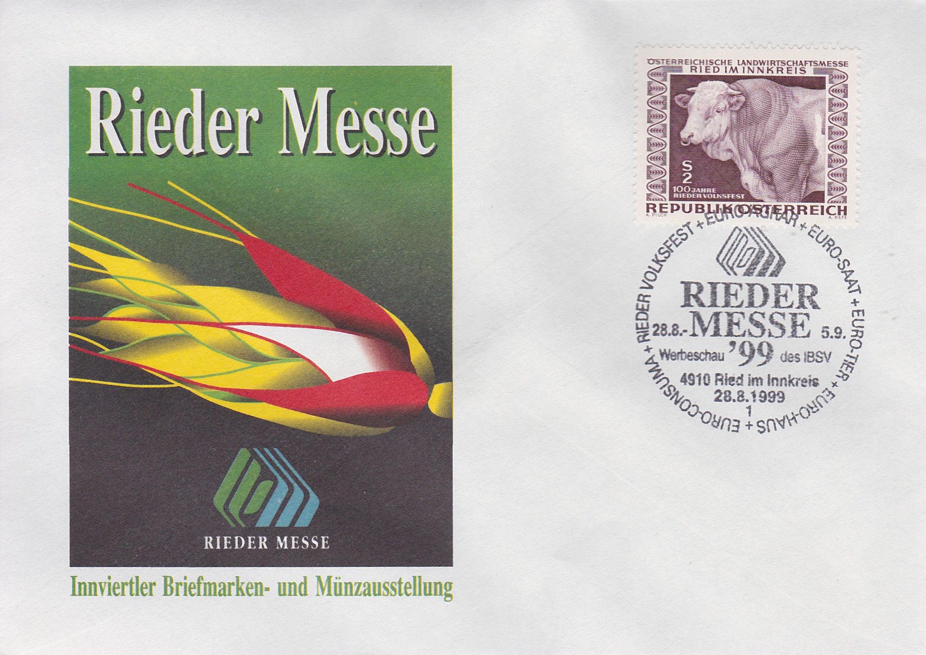 ![]() Kuvert mit Sonderstempel "Rieder Messe" € 0,50 (IBSV 1) |