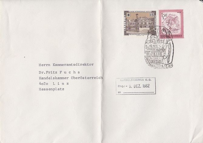 Einzelstück Kuvert mit WM (1983, ANK 1792) und Nikolausstempel |