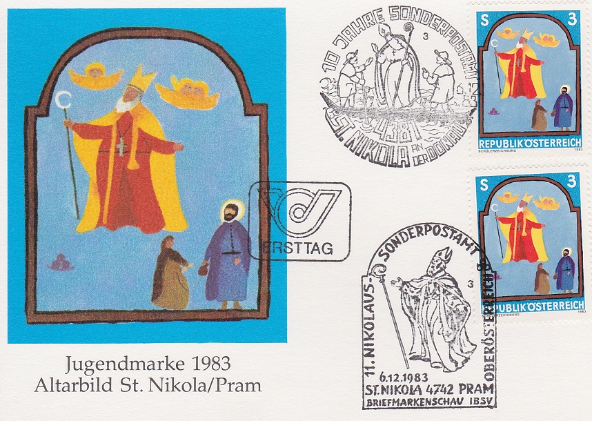 ![]() ![]() Einzelstück Karte mit Nikolamarke und Sonderstempel € 4,50 (HG) |