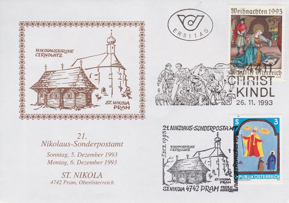 ![]() Ersttag Kuvert mit Kombination Stempel Pram/Christkindl € 12,00 (KR + wk) |